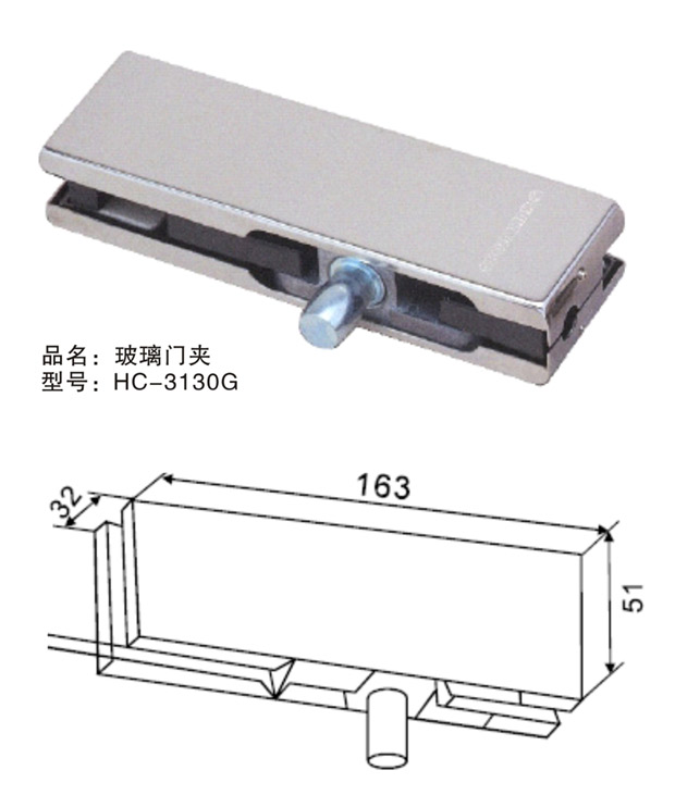 主要功能:跟鋼化玻璃門緊密連接。很好的配合地彈簧或地轉軸使用。