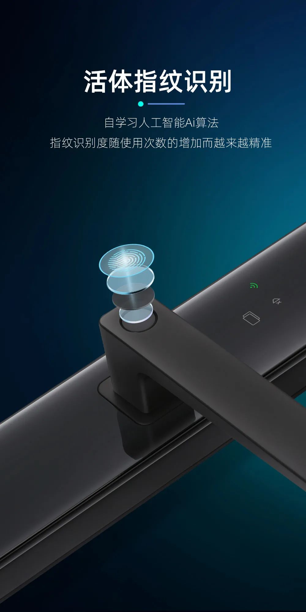 與此同時,A8 pro旗艦智能鎖采用內嵌式指紋結構設計,防止暴力、技術拆卸指紋讀頭開鎖。采用人體工程學,握住并下壓把手這動作即可完成指紋識別與開鎖,開門一氣呵成,早一秒進家擁抱心愛之人。