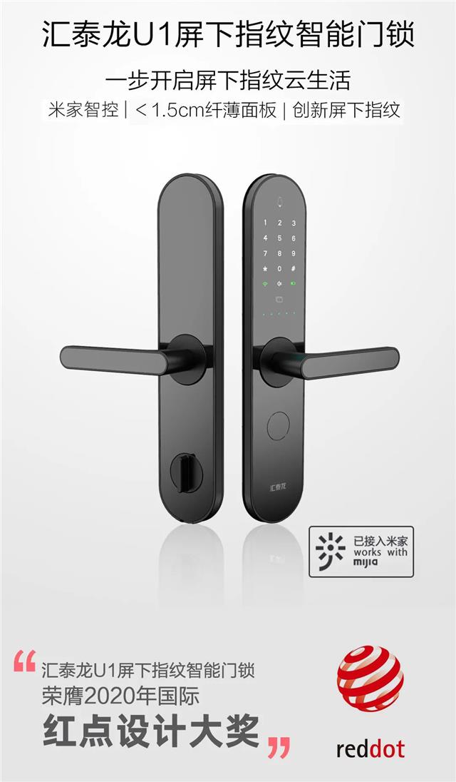 匯泰龍U1屏下指紋智能鎖,在產品美觀度、革新度、產品設計概念、人體工程學/人體互動等方面表現突出,獲2020年“德國紅點產品設計大獎”,為家庭帶來炫酷的入戶觀感、黑科技的解鎖方式、安全的防護與智能的生活體驗。