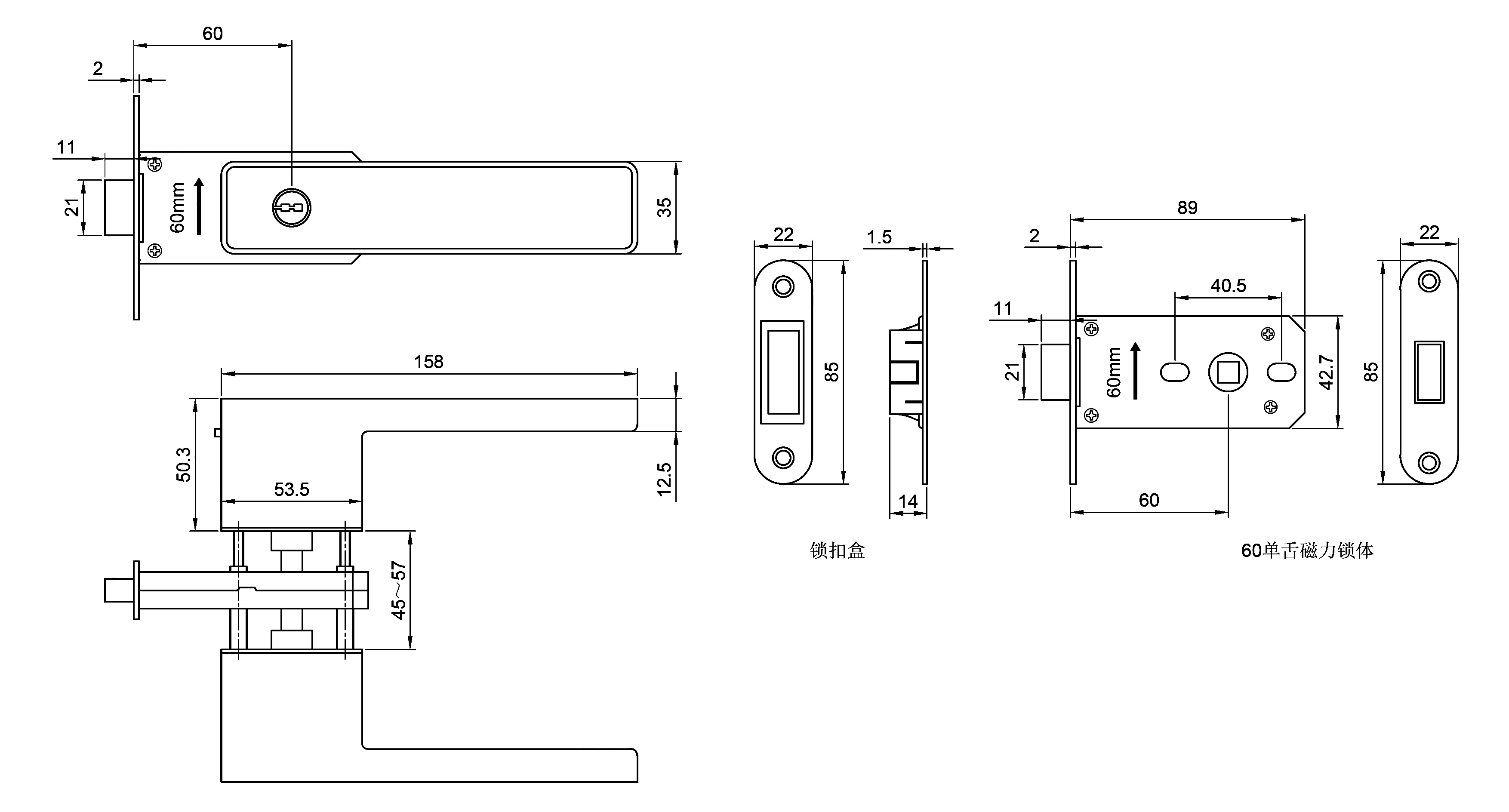 適合門厚:45~57mm的各類木質門扇,若門厚小于45mm需定制,定制的門厚范圍36~45mm