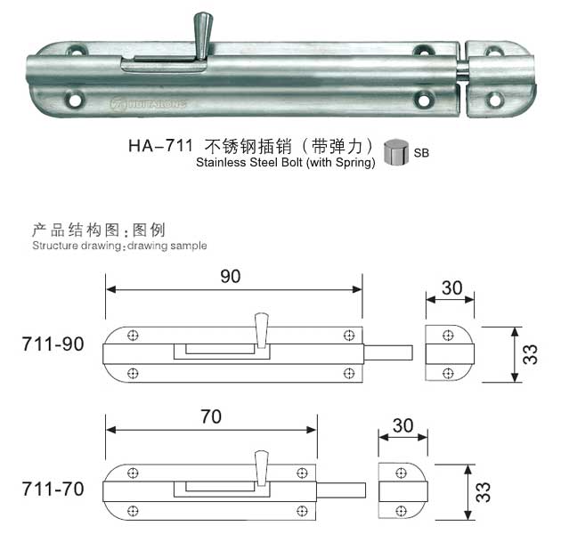 插銷安裝應根據不同的使用要求來選配,如門款,門的尺寸,安裝位置。