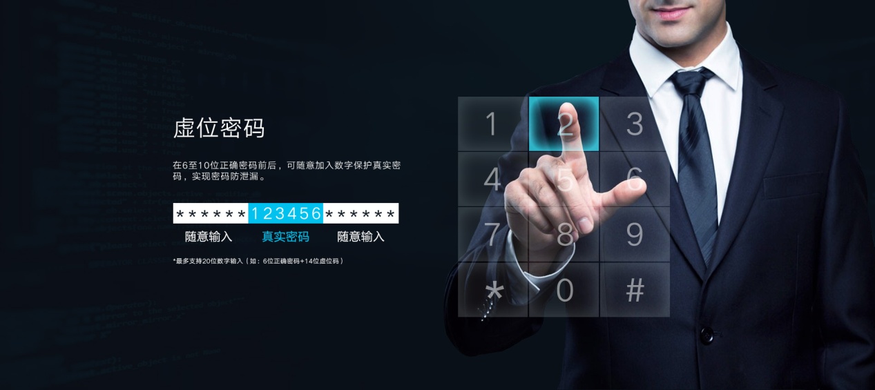 有時候需要用密碼開鎖,旁邊又剛好有人,這時候該怎么辦?不用擔(dān)心!盡管用密碼開鎖,虛位密碼功能,讓我們可以在6位正確密碼前后,隨意加入數(shù)字保護真實密碼,最多支持20位數(shù)字輸入(6位正確密碼+14位虛位碼),實現(xiàn)密碼防泄漏。