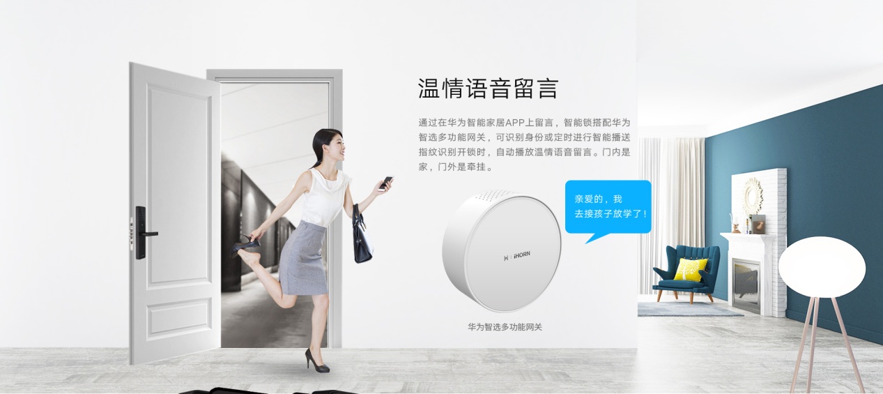 為了給家人更好的生活,我們投入更多的時間到工作中,陪伴家人的時間越來越少。為此,華為智選智能指紋鎖推出溫情語音留言功能,配合華為智能網(wǎng)關(guān)即可使用。“昨晚冰箱買了酸奶,這兩天要及時喝哦”、“昨晚我聽見你咳嗽,吃完飯記得吃藥”、“爸媽,感恩節(jié)快樂~愛你們喲”……生活瑣事溫馨提醒,節(jié)日溫情祝福。即使我們和家人的工作休息時間有時差,“陪伴”也不會少。