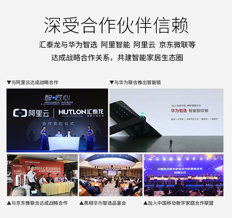 華為智選生態產品 匯泰龍智能指紋鎖由華為智選與匯泰龍聯手,雙方深度合作共同打造而成,擁有一步開鎖、真插芯+C級鎖芯、門狀態檢測、智能互聯和溫情語音留言等功能特點,使用戶可以享受智能帶來的便捷和安全。
