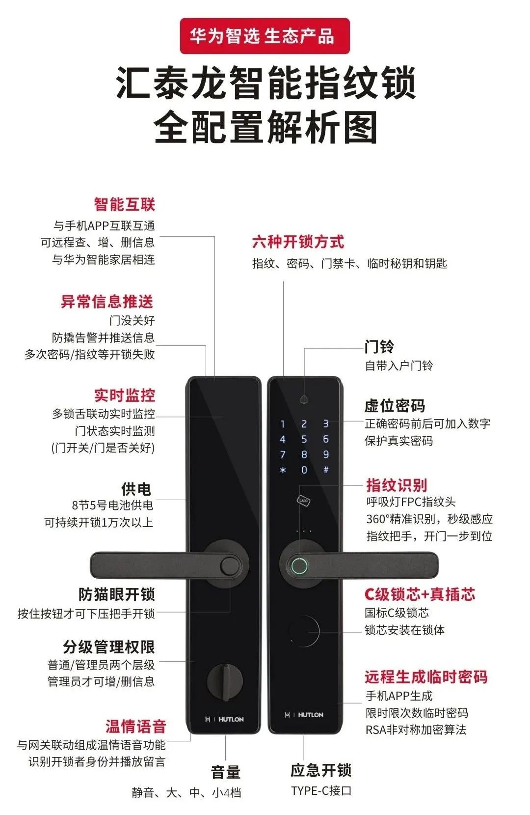 華為智選生態(tài)產(chǎn)品 匯泰龍智能指紋鎖,由匯泰龍與華為智選雙方深度合作共同設計打造而成。匯聚匯泰龍二十余年的鎖具經(jīng)驗,結合華為“芯、端、云”等多方面的技術。
