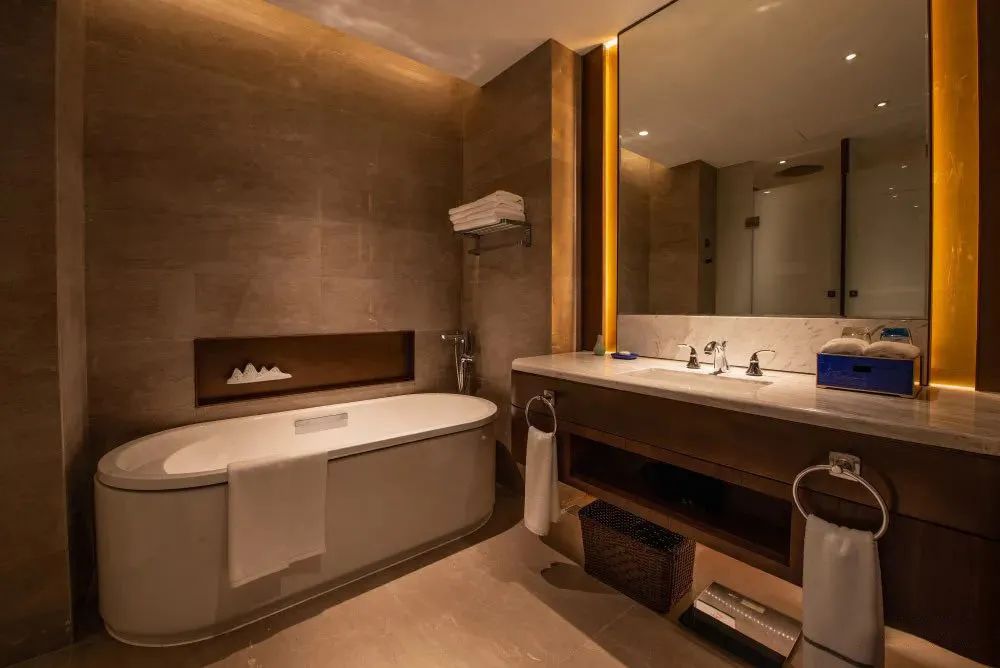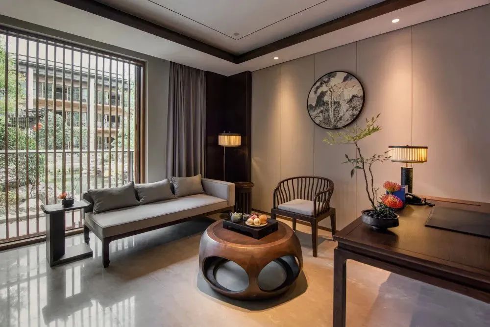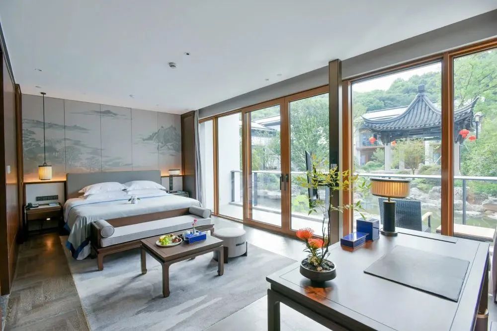臥室內(nèi)部以中式風(fēng)格為主,與外圍建筑呼應(yīng),讓客人體驗(yàn)到詩中游,畫中住的居住體驗(yàn)。