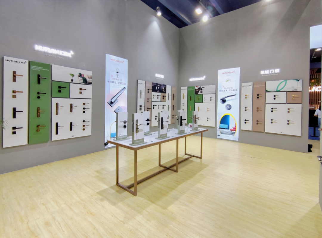 采用陣列的展示方式,突出展示門鎖、門配五金、家具五金、小拉手、衛浴五金、地漏等家居五金,全屋五金新品,吸引客商駐足了解。
