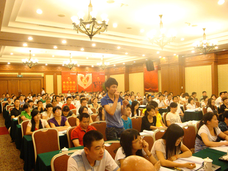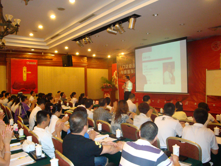 7月7日上午8:00,廣州華夏大酒店三樓會議廳內一片喜慶的景象。紅色的地毯、紅色的匯泰龍主題背景、紅色的文化宣傳畫交相輝映,把整個會議廳的氣氛渲染得熱烈而喜慶。走進會議廳內,三百個擺放整齊的座位,無一虛席,大型的主題背景上赫然印著“匯泰龍門店銷售與管理技巧培訓”的主題大字。匯泰龍全國經銷商大型培訓正在此舉行。
