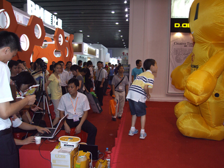 展館外,創(chuàng)意無限的展臺形象,逗留在匯泰龍展臺前的觀眾爭先合影留念,一分鐘快照項(xiàng)目讓觀眾留下了美好的回憶。可愛逗趣的匯泰龍吉祥物——星Q互動,吸引了眾多參觀者的眼球,匯聚了全場最高的人氣,讓匯泰龍展臺一如往年成為展會的人氣中心。