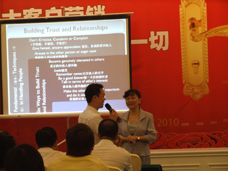 此次培訓由匯泰龍公司主辦,長沙立恒裝飾材料公司協辦,在長沙明城國際大酒店的白宮廳如期舉行,此次培訓依然邀請了知名企業培訓講師、卡耐基授權講師(IOWA)、美國禮儀協會海外會員李佳麗老師擔任主講。