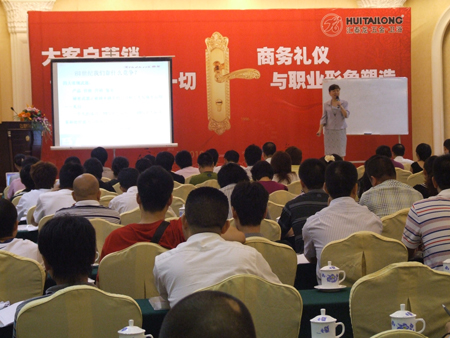 76日,在第十二屆建博會開幕前夕,匯泰龍組織了一場全國經銷商的商務禮儀與職業形象塑造大型培訓。914日,更深入、更全面的商務禮儀職業形象塑造培訓再次展開。