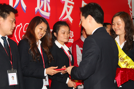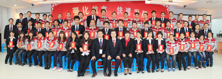 董事長和總經(jīng)理發(fā)言后,在此次開工大會(huì)上對2010年度評選出的優(yōu)秀員工和執(zhí)行力標(biāo)兵頒發(fā)了榮譽(yù)證書和獎(jiǎng)勵(lì)。本次共評選出執(zhí)行力標(biāo)兵15人,優(yōu)秀員工49人,由董事長和總經(jīng)理分別對獲獎(jiǎng)人員頒發(fā)榮譽(yù)證書。
