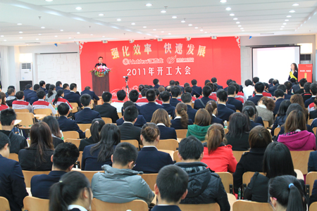 當(dāng)新年的祝福聲、歡笑聲漸漸淡去,2月11日,農(nóng)歷正月初九,匯泰龍正式開工,各項(xiàng)工作有條不紊地開始啟動(dòng)進(jìn)行。晚上6點(diǎn)半,匯泰龍2011年開工大會(huì)在佛山南海生產(chǎn)基地隆重召開。