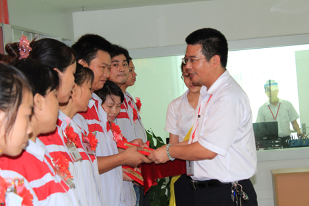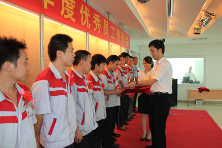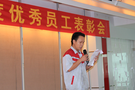730,匯泰龍佛山南海生產基地辦公樓五樓會議廳聲樂交響、燈火通明,匯泰龍2011年度上半年度優秀員工(七級員工)表彰大會隆重召開。公司總經理徐振忠先生、制造中心總監莫志金先生、行政中心總監任志平先生、三位部門經理、三位車間主任及22名優秀員工到會,會議上徐總發表了講話,他首先指出,一個優秀的企業離不開每一個優秀的團隊,優秀的團隊的品質必須由每一位優秀品質的員工才能體現,受表彰的22位優秀員工在平凡的崗位上兢兢業業,足以成為匯泰龍人學習的榜樣。行政中心總監任志平先生宣讀了《2011年度上半年度優秀員工名單》,公司領導為22名經民主投票評選出的優秀員工進行頒發榮譽證書,獲獎員工吳忠望、潘祖庭代表全體優秀員工發言,最后,所有嘉賓與優秀員工合影留念。表彰大會氣氛熱烈,在圓滿完成會議議程之后,勝利閉幕。