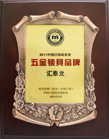 2011年,是匯泰龍成立十五周年,十五年來匯泰龍一直秉承“品質造就滿意”的企業理念,以其卓越的產品品質、服務品質、管理品質、文化品質已逐漸成為消費者五金消費的首選品牌,通過國內建博會、廣交會等國際性展會平臺,在國際市場上的品牌影響力也慢慢滲透。為此,匯泰龍公司繼續加大開發力度,堅持不懈地以高品質、款式新穎的產品樣式推向市場,滿足終端消費者的家居生活需要。匯泰龍五金衛浴目前已具備智能電子鎖、五金、衛浴三天產品系統,十四大類別,兩千多種單品。特別在鎖具有著自主研發的數百項專利技術,2011年匯泰龍在全國各地經銷商網絡迅猛擴張,公司將陸續把更多款形、樣式帶給廣大消費者,致力于以高水平的產品質量及卓越的售后服務為消費者營造輕松舒適的生活意境,為廣大顧客帶來獨特的人類宜居的生活理念,深受家裝市場的歡迎,此次,匯泰龍榮獲“2011經銷商首推五金鎖具品牌”的稱號可謂實至名歸!