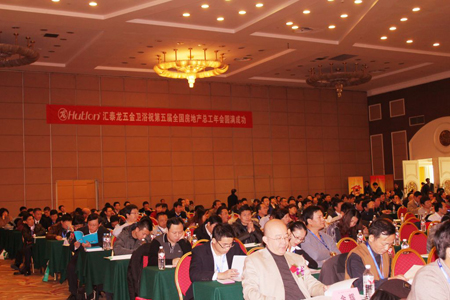 會議期間,第五屆全國房地產總工年會同期舉行,各知名企業搭建展臺,集產品展示、貿易洽談、技術交流、信息發布,展示了各自領域的新產品、新技術、新工藝,受到與會者的廣泛歡迎。董事長陳鴻填先生作了《建筑裝飾材料之靈魂——五金衛浴》的專題演講。演講的主要目的是加強建筑產業上下游企業間的戰略合作,為建筑工程提供更多更好的優質建筑裝飾材料。演講過程中,陳董首先向大家簡單地介紹了匯泰龍公司的發展歷程和品牌文化,接著,他針對五金衛浴與現代建筑的關系作了深入的講解,從而引申出匯泰龍高端的產品定位和品質內涵,演講中,匯泰龍五金衛浴專業、專注的產品解決方案更是吸引了在座的房地產總工們。會議結束后,匯泰龍公司與全國房地產總工會俱樂部簽署了長期戰略協議。