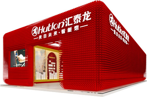 匯泰龍本次的展館主題是:“來自未來·智能館”。進入A區(qū)館品牌云集的1.1館,匯泰龍展館以奔放熱烈的紅色深深地吸引了眾多參觀者駐足留連。匯泰龍一改以往傳統(tǒng)的強調(diào)秩序的表達方式,主體造型模擬光的物理形態(tài)來衍生,將呈放射性的“光線”用實體形態(tài)作抽象的表達,讓人浮想聯(lián)翩。那如同光柱般的大小長短相同的圓柱,成為設(shè)計的基本元素,嚴謹有序的排列,繼而聯(lián)成一片,合并成一個完整的建筑造型,也因此而形成強大的視覺張力,整體造型模擬出光從光源向四面八方散射出去,不斷延伸,灑遍世界每個角落。詮釋現(xiàn)代科技,就如帶給大地蓬勃生機的光芒。