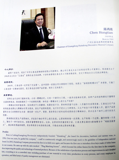 據悉,匯泰龍董事長陳鴻填先生自1996年創立匯泰龍品牌。十八年來,帶領匯泰龍員工不斷拼搏進取,堅定不移地走自主品牌路線,將匯泰龍品牌發展成為五金行業潮流的引領者。