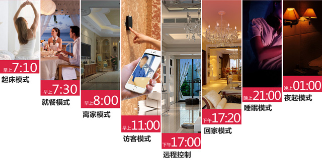 晚餐時間到啦,媽媽把最后一道菜做完時,輕觸一下就餐模式,餐廳的燈光自動亮起(會根據(jù)家中的光線強弱,自動調整亮度,即節(jié)能又舒適),就餐輕音樂響起,為你和你的家人營造一個愉快的就餐環(huán)境;