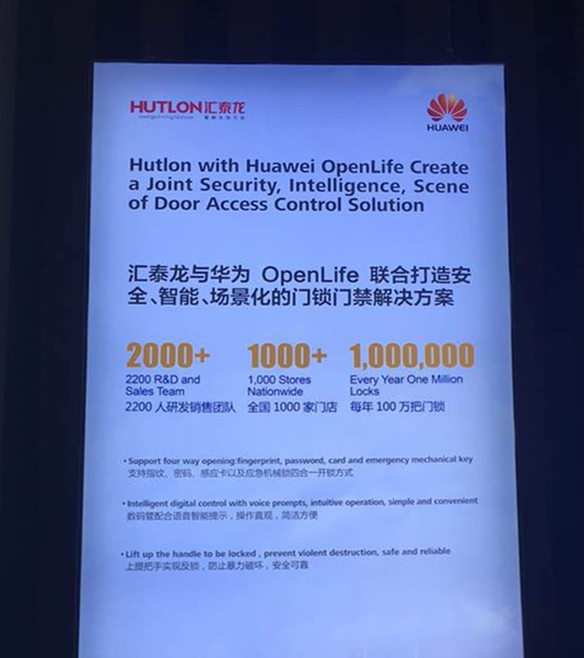 2016年9月2日,華為歷史上規(guī)模最大的面向ICT行業(yè)的全球生態(tài)大會(huì)——HUAWEI CONNECT 2016 在上海世博中心落下帷幕。匯泰龍作為華為OpenLife智慧家庭重要戰(zhàn)略合作伙伴之一應(yīng)邀亮相上海世博中心,面向全球120多個(gè)國(guó)家和地區(qū)的20000名業(yè)界精英,展示基于華為OpenLife智慧家庭生態(tài)的匯泰龍門鎖門禁解決方案,并憑此獲得華為開發(fā)者生態(tài)最佳解決方案獎(jiǎng)。