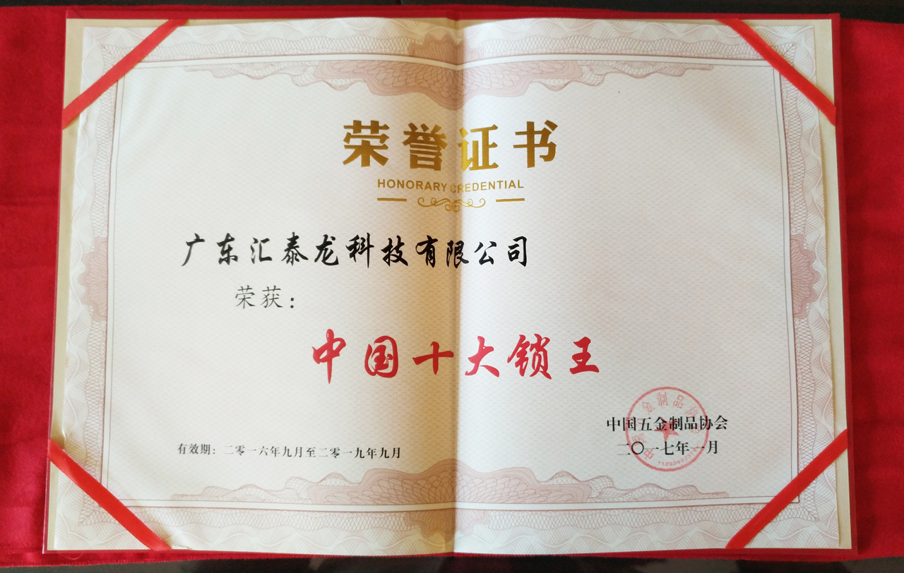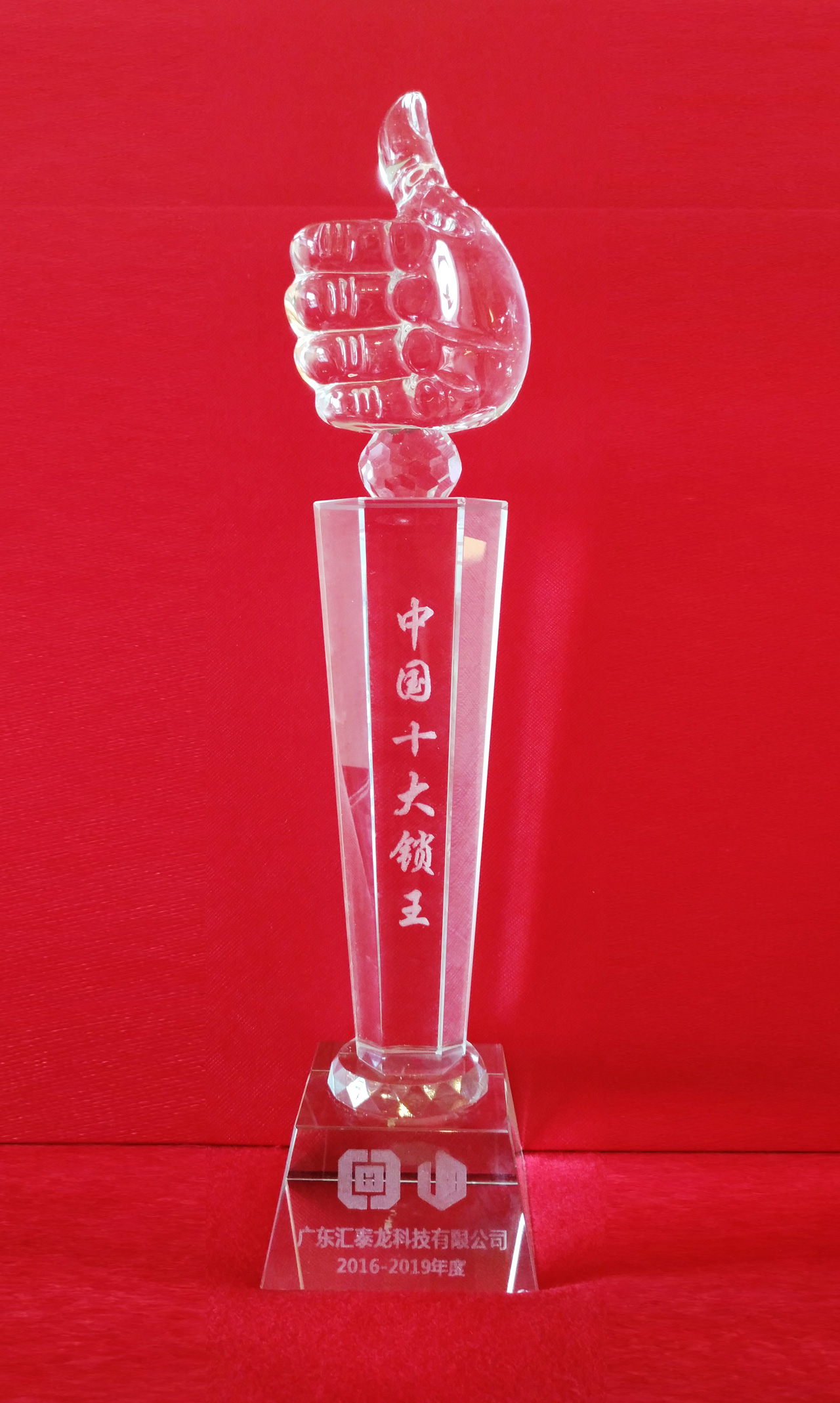 “中國十大鎖王”、“中國智能鎖知名品牌”的評選,歷經層層選拔,要求嚴格,考核質量指標和市場占有率指標,產品質量要處于國內領先地位,市場占有率、品牌知名度、產品開發能力等居鎖具行業前列,能獲選“中國十大鎖王”和“中國智能鎖知名品牌”,是對匯泰龍在鎖具行業的影響力、鎖具產品的綜合實力的絕對認可。
