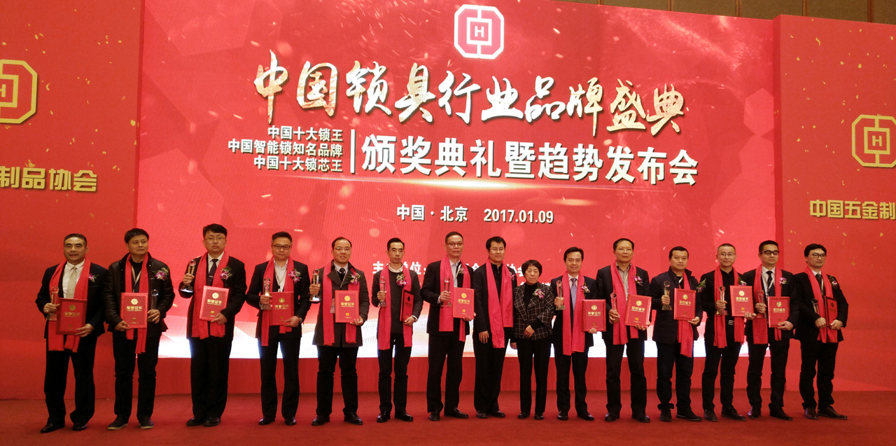 2017年1月9日,中國鎖具行業品牌盛典頒獎典禮暨趨勢發布會在北京釣魚臺國賓館舉行。本次活動由由中國五金制品協會主辦,中國五金制品協會制鎖分會協辦。