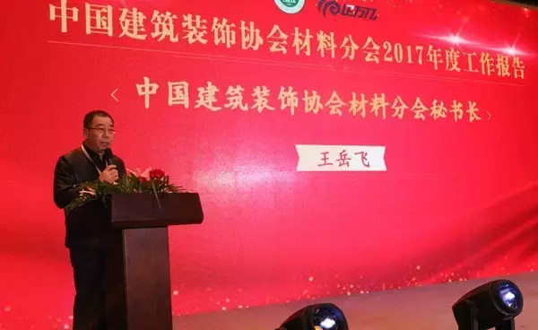 中國建筑裝飾協會材料分會秘書長王岳飛先生做「材料分會工作報告」:
