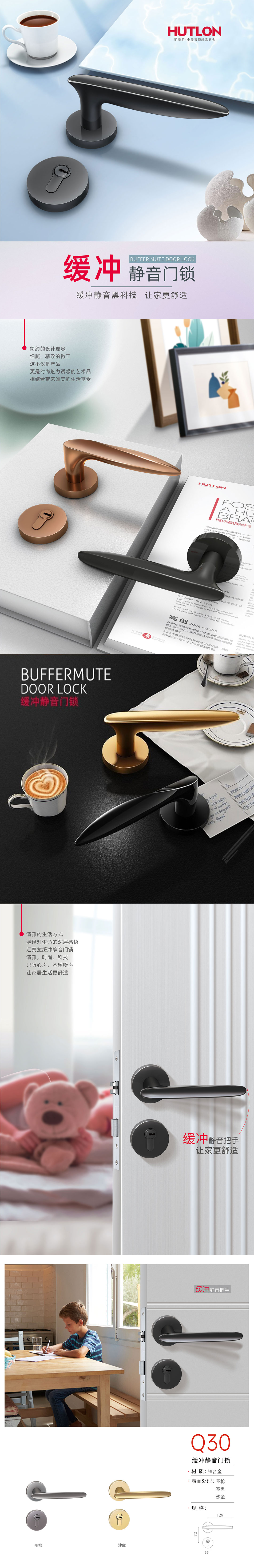 內(nèi)置阻尼器設(shè)計(jì),開(kāi)關(guān)門(mén)下壓把手的聲音遠(yuǎn)小于普通門(mén)鎖