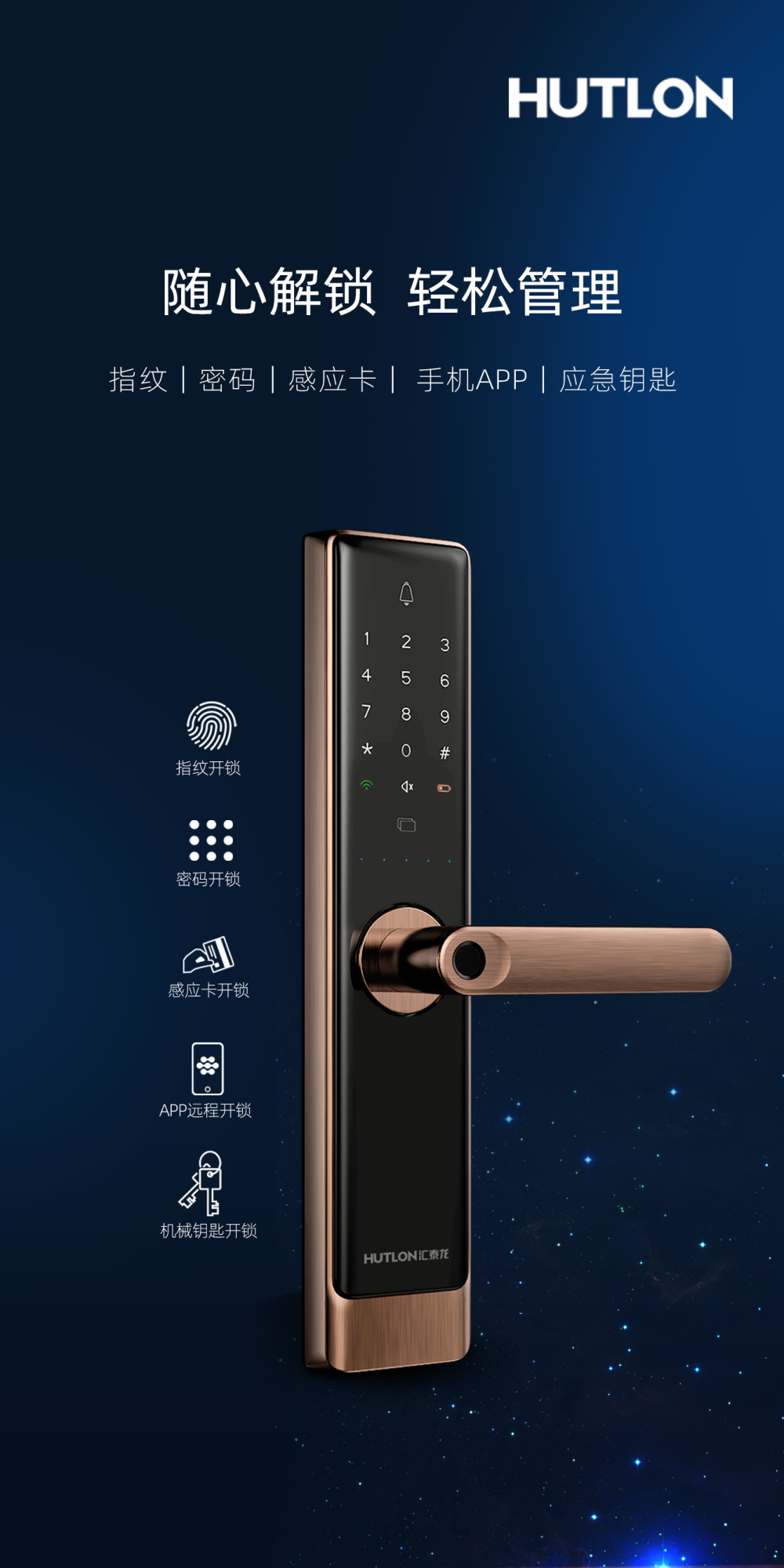 支持指紋、密碼、感應卡、機械鑰匙四合一開鎖方式;