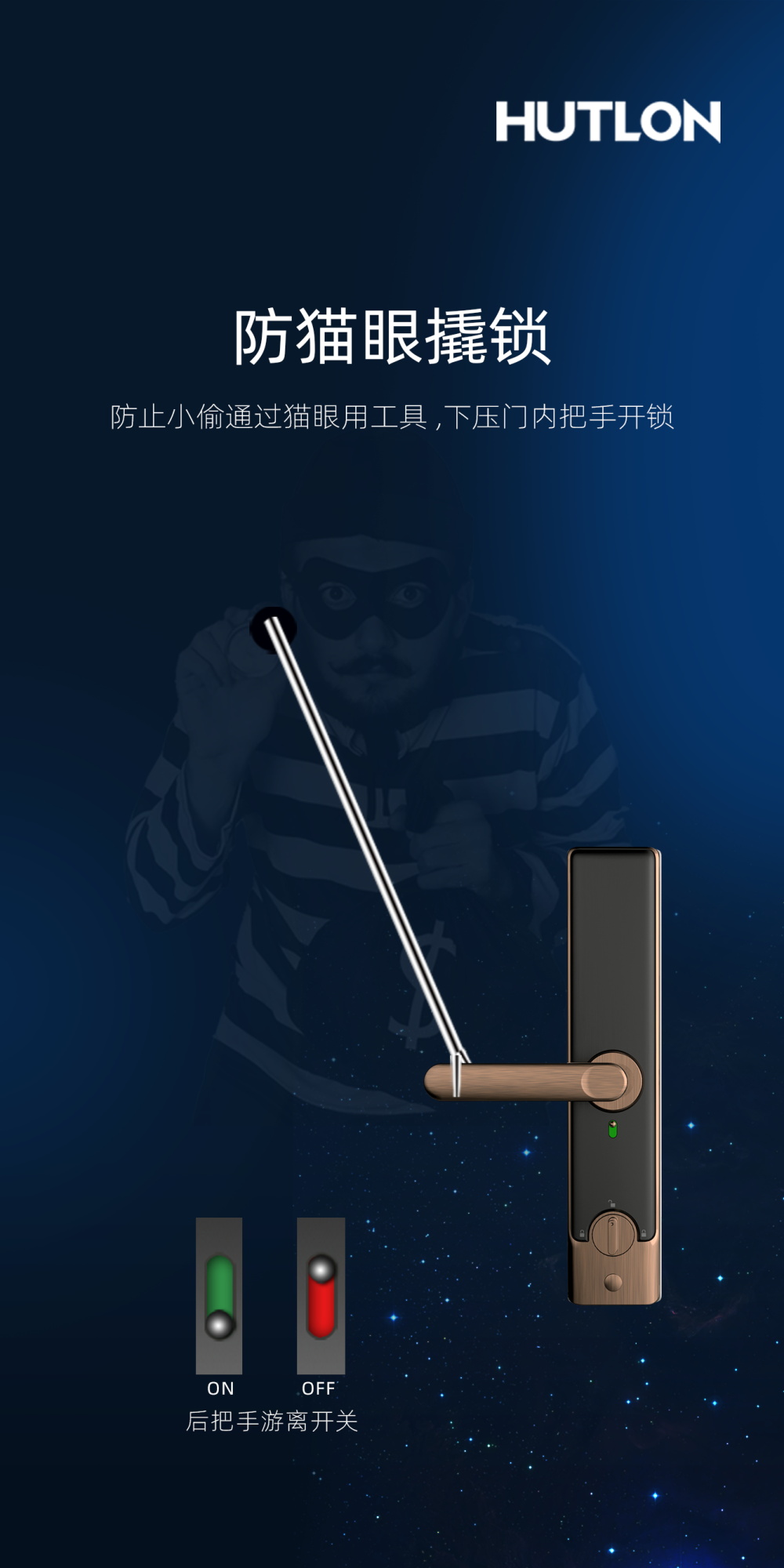 上提實現反鎖,把手游離設計,防止暴力破壞,安全可靠;