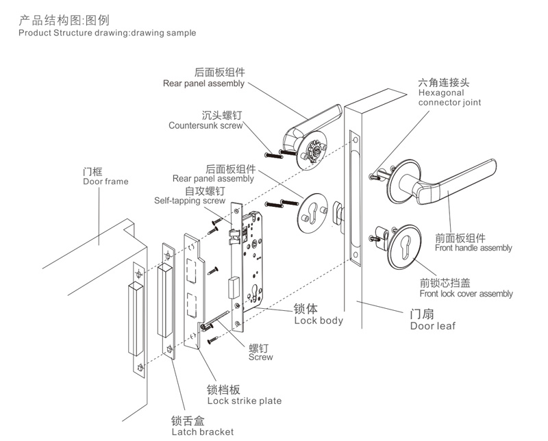 6擰緊螺釘,安裝扣板及扣盒,對齊鎖體,應使鎖舌與之配合順暢,擰緊螺釘(如上圖:H)。