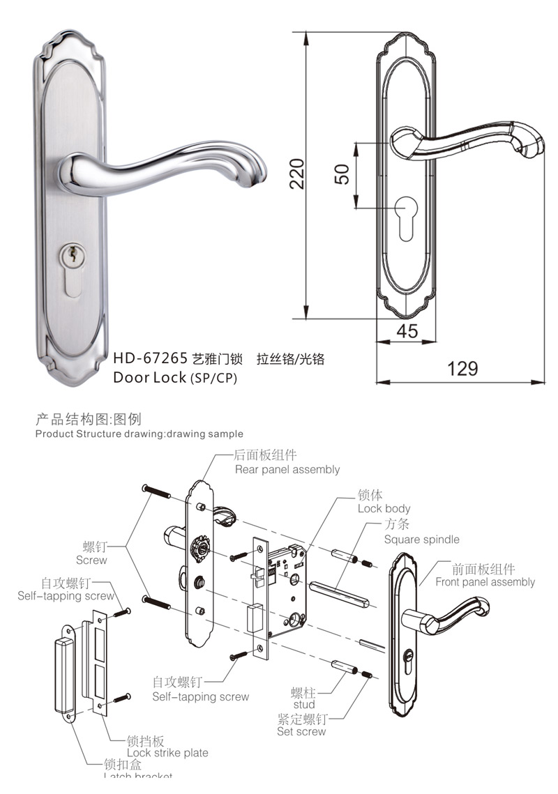 3將方桿穿過門板插入鎖體(如下圖:D)。